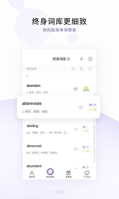 2. 用户在平台查询的单词会自动收录,形成专属词库。