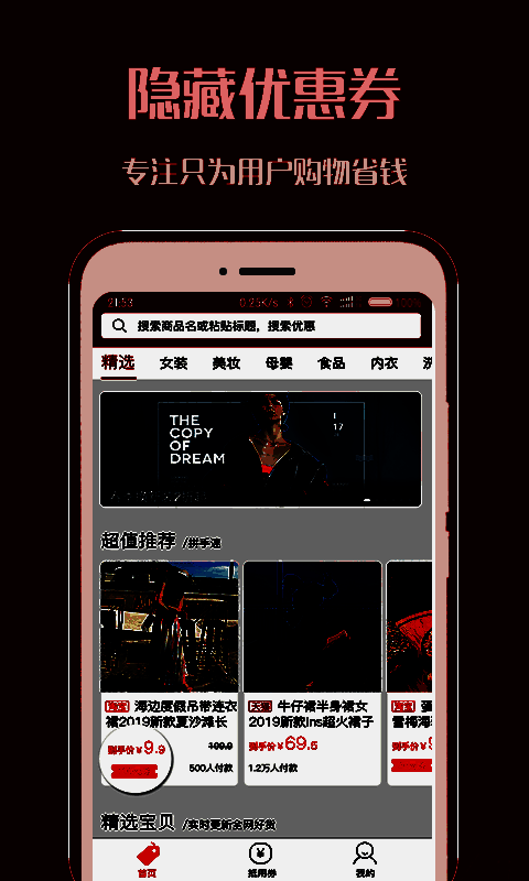 使用搜索功能,既能找商品又能搜优惠券,还能对商品进行货比三家。