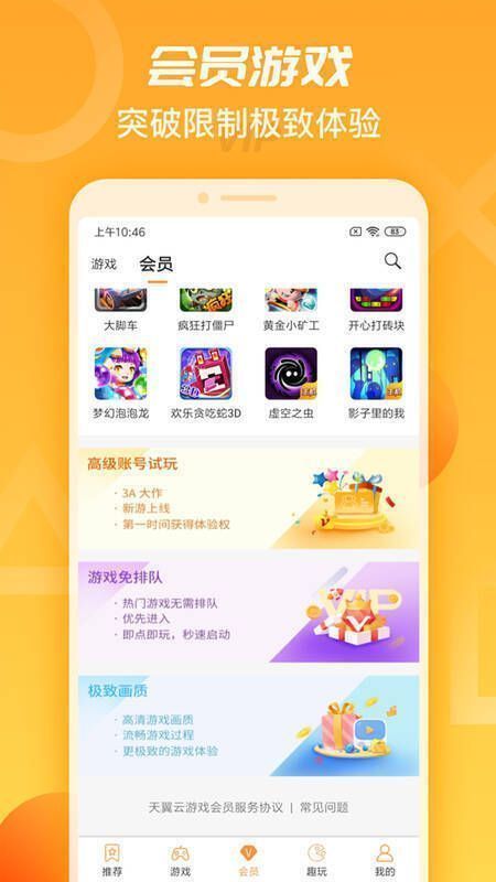 天翼云游戏 app 是电信 5G 推出的游戏平台软件,为用户提供最新、最好玩的手游内容。用户不仅能获得免费的新游测试服务,享受一手手游资讯资源,还能领取游戏礼包,轻松度过新手期。它是为玩家精心打造的云游戏平台,具备全网络接入、高清内容、多终端沉浸式体验等特点。玩家利用 5G 等高速网络,即点即玩,无需下载安装,随时随地畅享各类手机、主机优质游戏。