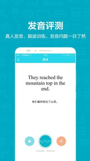 - 发音评测:真人发音,跟读训练,发音问题清晰可见。