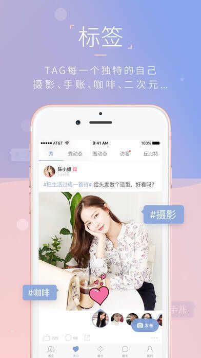 2、【个性标签】:众多热门标签可选,清晰贴出“我是谁”和“我喜欢”,快速寻觅到兴趣相投之人。