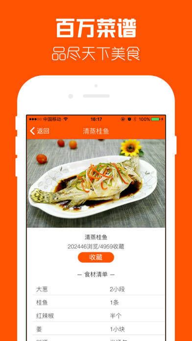 有3万专业大厨提供百万美食菜谱,让你每天都能时尚新鲜地吃,把做饭变成一种享受。