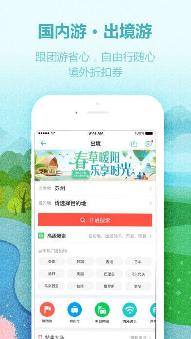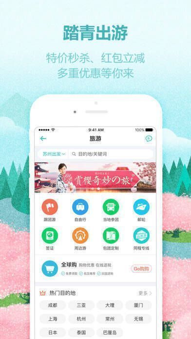 4. 周边游:有秒杀、返现、满赠、红包立减等多种玩法。跟团游是同程专线,一站直达;自由行则能说走就走。