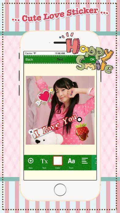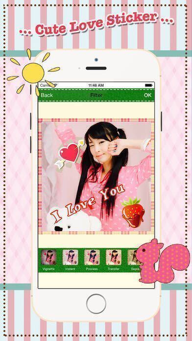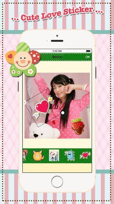 可爱的爱贴能从各类照片来源获取令人惊艳的照片,比如相册、相机拍摄或是从Facebook获取新照片。还能应用任意数量的照片贴纸,之后可保存照片,也能借助任意照片分享应用与亲朋好友分享。