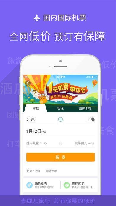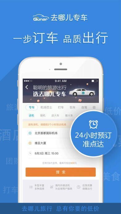 借助移动客户端的全平台覆盖,去哪儿旅行提供吃住行游购娱一站式解决方案,随时随地为旅行者提供国内外机票、酒店、度假、租车、接送机、火车票和团购等旅行信息的深度搜索与预订服务。超80%的低价占比和丰富全面的旅行产品,助力旅行者找到高性价比的产品和优质信息,智慧安排旅行。