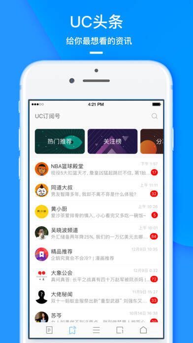 1、【订阅大咖 】数千位大咖入驻UC,一键订阅他们的干货文章,还能与他们私信互动。