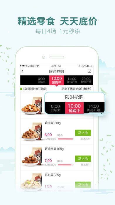 限时抢购:每日4场,限时限量,各种美味零食只需1元。