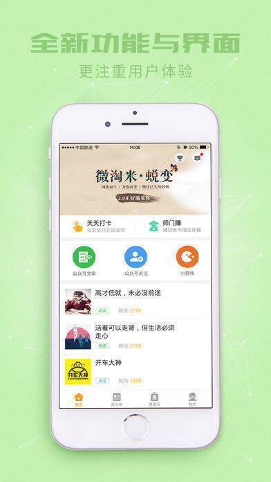 《微淘米》是一款别具创新的公众号资讯阅读软件。它秉持“让您的阅读更有价值”的理念,致力于为用户带来更具价值的阅读体验。在阅读过程中,融入了惠惠买功能,让用户既能阅读资讯,又能享受购物折扣。软件每日精选多个公众号文章,关注公众号可及时接收最新消息。速头条文章内容丰富有趣。惠惠买实时推送购物打折信息,精选优质购物方案。此外,还有快乐的UGC社区等亮点。v2.1.3版本更新了财富榜规则并优化界面。