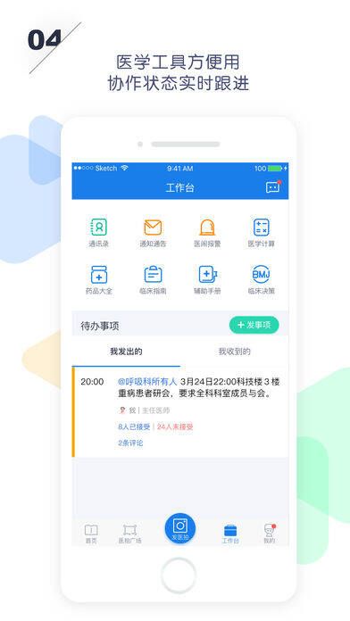 软件特色丰富,有学术资讯助力学术成长、医拍广场供学术交流、我的医拍方便记录存储医学内容、工作台提升工作效率。亮点众多,如随时查阅院内公告、免费电话会议等。v3.9.5版本优化了用户体验,打开页面更快,还修复了已知问题。