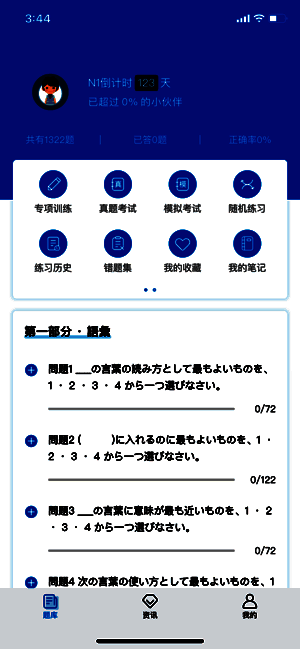 4、学习日语需不断记忆与练习,可直接在手机上复习,积累考试经验。