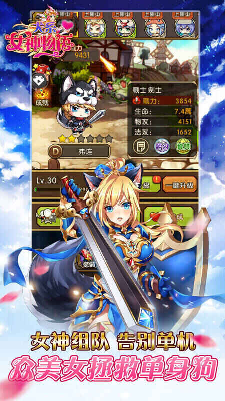 风格各异的女神角色纷纷登场,有天真的萝莉、成熟的御姐、外向活泼的女神。玩家可以和伙伴组队,告别单机游戏的枯燥。游戏中无限属性飙升,神兵随时降临,还有缤纷的活动奖励。玩家可以养成调教伙伴,参与热血刺激的天梯争霸,让美女拯救单身狗,是不是让人激动万分?每个女神都独具特色哦。
