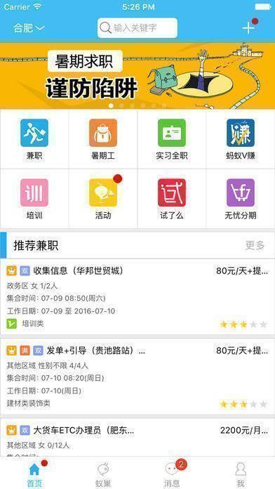 《蚂蚁兼职》——一款超实用的手机兼职应用,专为大学生打造!它由校园无忧网精心研发,提供安全便捷的兼职服务,涵盖培训、活动、交友、创业等多元功能。独创身份认证与互评体系,规范市场、保障薪资安全。操作简单,功能强大,还能记录成长、呵护梦想。