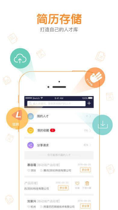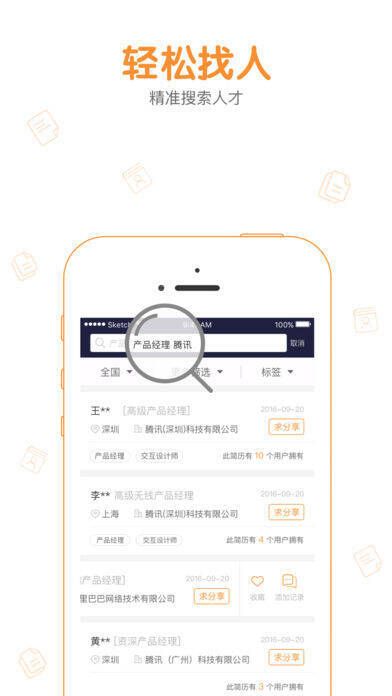 能搜索所需的人才信息,快速筛选目标人才,还可将人才信息分享给同事。