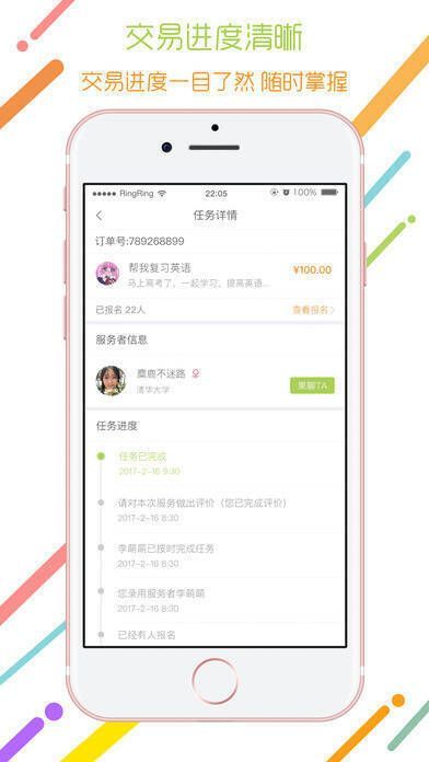 v3.3.0更新内容:1、优化界面,提升操作体验;2、增加任务分类和关键字搜索,查找更精确便捷;3、新增“发现”板块;4、增加“任务时限”和“催TA干活”功能,提高完成效率;5、增加任务互评功能;6、优化用户个人主页,信息更丰富。