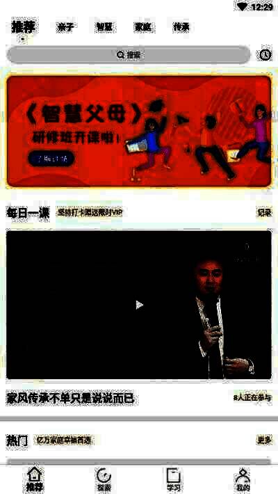 【推荐页】:全新推荐页重磅上线,每日有59秒小视频;能看到引发共鸣的热门课程;还有限时免费课程可观看等,五大频道共同助力亿万家庭收获幸福!