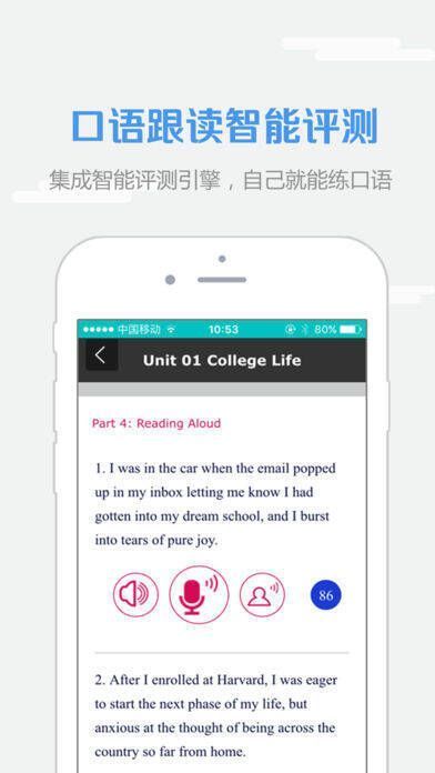 1、支持移动课程包在线学习,实时记录学习结果并生成报告;2、可扫描教师发布的任务二维码快速学习对应内容;3、具备简单有效的学习笔记和问答发布功能;4、内置英语跟读自动评分引擎,实现口语自主训练;5、集成作文智能评分引擎,助力写作水平提升。