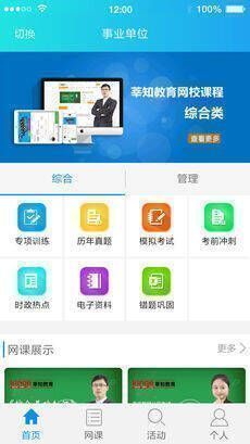 1. 全面覆盖多类考试,包括事业单位、公务员、教师公招、教师资格四大类,每类考试根据不同目标提供对应知识点题库、直播课和视频课。2. 同步提供真题和预测题,答案解析由授课专家共同编辑审核,可针对每个知识点进行专项练习。3. 个性出题,借助人工智能根据目标考试的考点、难点,套用数学函数精准出题、计算成绩、记录练习课程、生成数据报告、预估考分及排名。