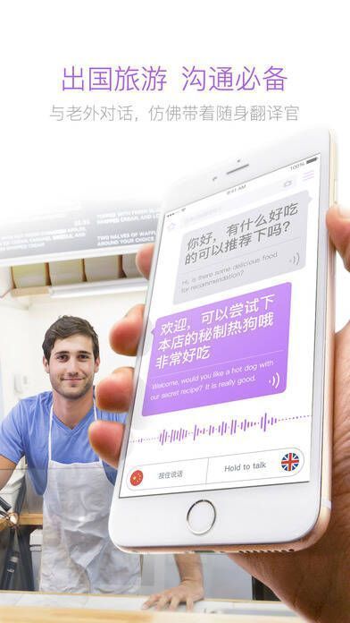2、助力出国旅游沟通:在境外自由行时,遇到吃饭点餐、酒店住宿、购物支付、交通出行、景点浏览等语言交流难题,英语、日语、韩语不太好的同学,使用翻译君边说边翻译,就能和当地人实时交流,仿佛身边带着一位随身翻译官,让出国自由行更加轻松。