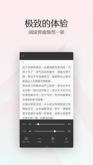 4、人性化操作:可依据个人阅读习惯调整字体、页面亮度、行间距离等;