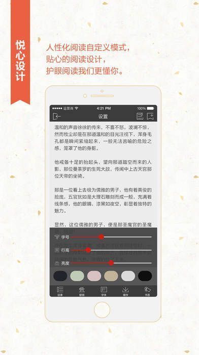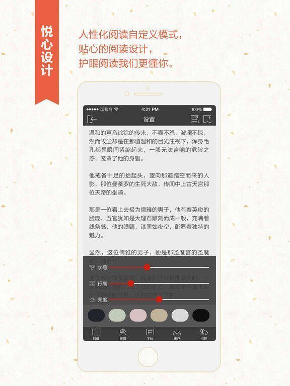 4. 操作便捷,书签、续读、设置等功能让阅读更个性化。
