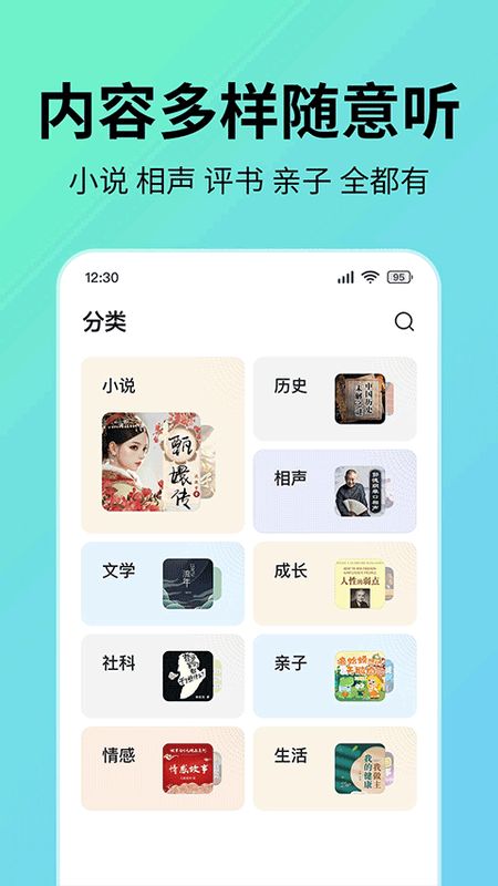 3. 产品种类丰富:涵盖都市、古今言情、玄幻、相声故事、历史出版、亲子情感等各类题材,任您畅听。