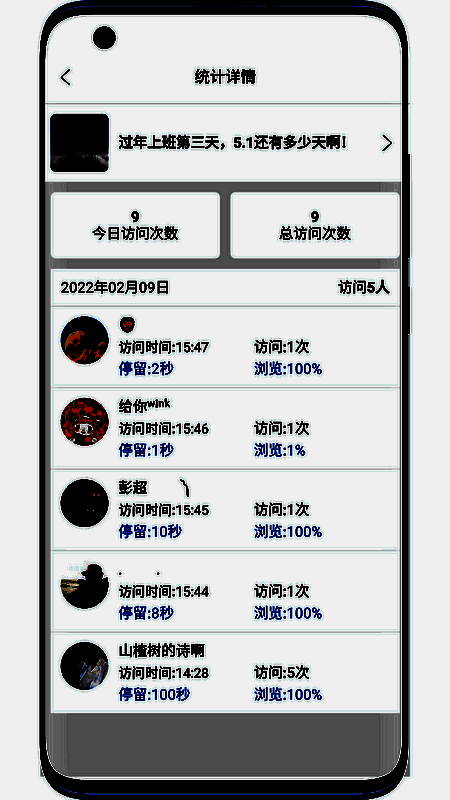 2、流量统计大师:针对不同群体,细致分析访问次数和时长,助你了解社交状况,优化互动策略。