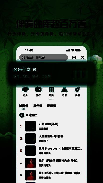 1. 歌曲分类推荐功能:5sing音乐会依据不同风格推荐相应音乐作品。