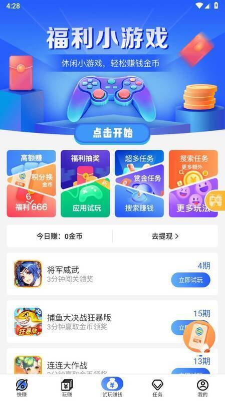 益玩赚作为一款手机应用程序,用户可通过玩游戏、试玩应用、观看视频等途径来获取金币,而这些金币能够兑换成现金进行提现。该应用程序已经实现累计提现超过 2 亿,同时 100%中奖的福利抽奖活动也让众多用户切实享受到了福利。