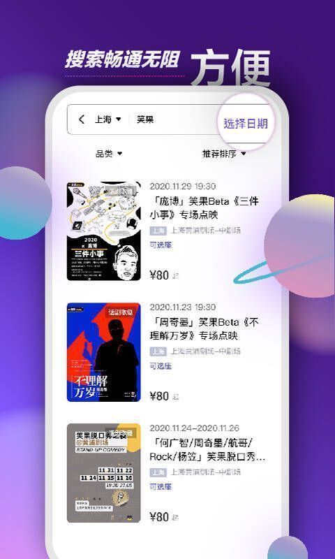 2、提供全面的演出信息,让你近距离接触众多明星,不容错过。