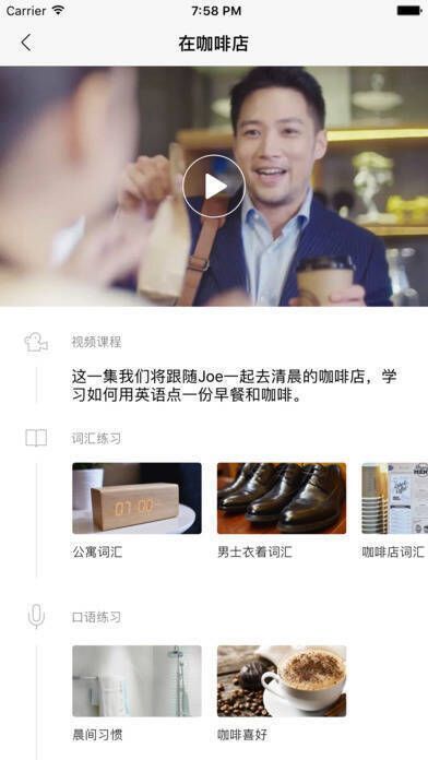 1. 模拟真实场景:包含一系列主题丰富、生动有趣的短视频,通过模拟真实场景,帮助用户学习实用且地道的英语短语并学以致用。