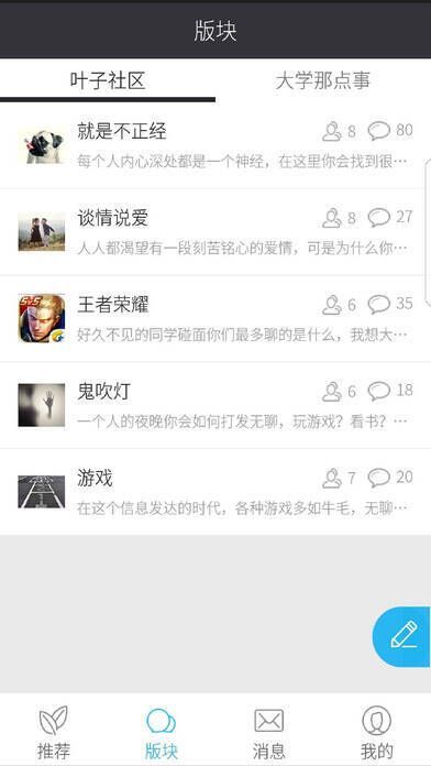 《叶子社区》是一款生活类聊天社交软件,主打及时享乐式交流。用户能在此分享好玩好看的动态,参与话题畅聊,探索生活乐趣,还有各种好玩的段子,助你在繁忙工作中寻得快乐。闲暇时,大家可在这个充满欢笑与乐趣的社区里开心聊天、发帖、玩游戏,分享生活趣事,说不定还能邂逅缘分。软件功能齐全、操作流畅,无收费项目。v1.1 版本优化了代码。