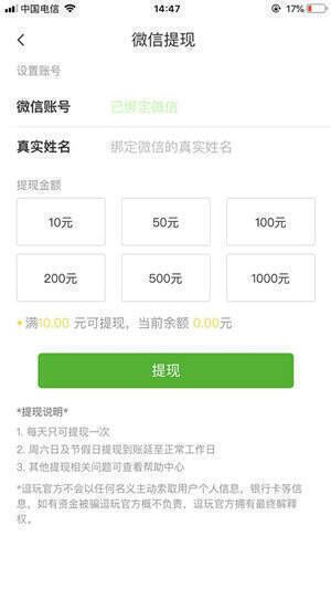 努力赚钱,任务单价0.7元起,每天下午4点会推出大量新品。收入超10元可从微信钱包取款,1 - 3个工作日到账。邀请学生可享受20%的佣金,每天最高25元,孙辈享受5%的佣金。任务要求很简单,和正常游戏过程无异,对大家来说都是额外福利。