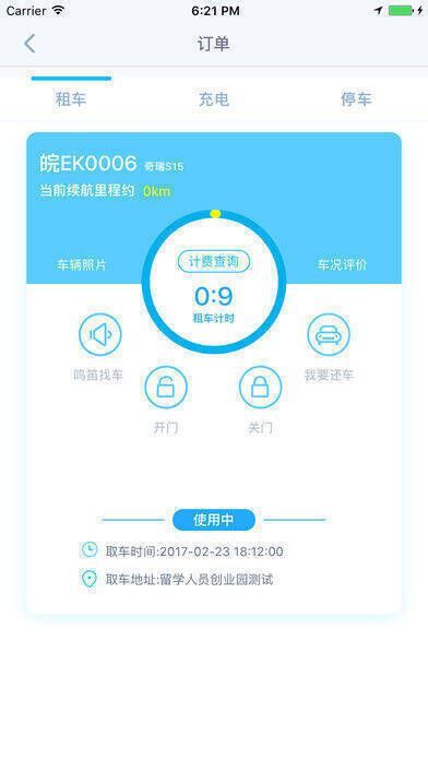 易开出行构建了电动汽车共享云平台,高效整合调配旗下电动汽车、充电设备、停车位等资源。用户可通过 APP 直接进行预约车辆、开门、点火熄火等控车操作。