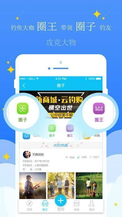 8、圈王玩法:在钓鱼圈子里,任何人都可以成为圈王(KING),带领圈子走向巅峰,超越其他圈王;