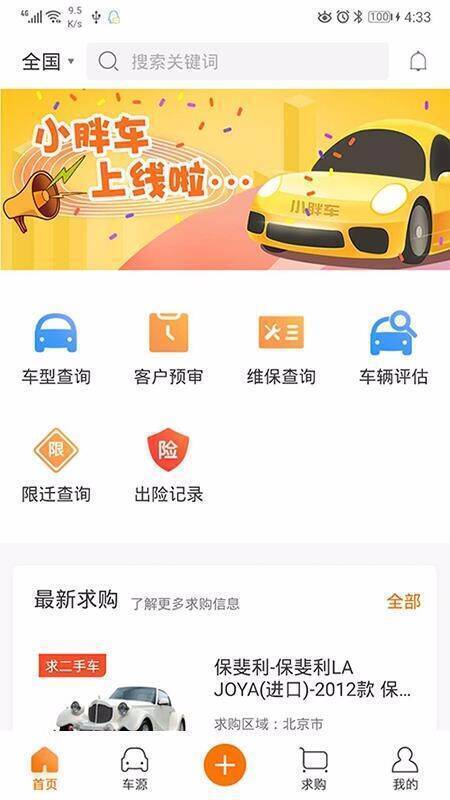 小胖车车商版app是一款汽车交易平台,新手车辆和二手车辆都带来,并且车型众多,不管您想要购买何种品牌、何种车型的车辆,都能为您提供方便;支持通过发布求购信息的方式寻找喜欢的车辆,这样就可以让更多想要购车的人轻松买车;包括客户预审、维保查询、车辆评估、限迁查询等车辆服务也有带来,一站式解决车辆问题,能够更轻松的购车;为了大家能够在更短的时间内寻找到心仪车辆,还可使用车型查询、分类检索、关键字查找等方法,精准查找需求车辆,从而为消费者提供方便、快捷的线上购车服务。