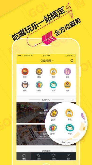 1、逛街购以城市商圈作为地标单元,由众多实体店电商共同构成电商O2O平台。