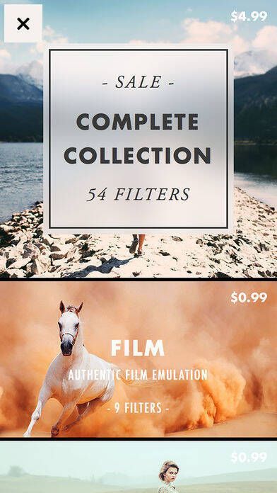 2. 7种过滤器套装包含电影、古董、复古、特殊效果、分裂/音调、柔和色彩和单调;