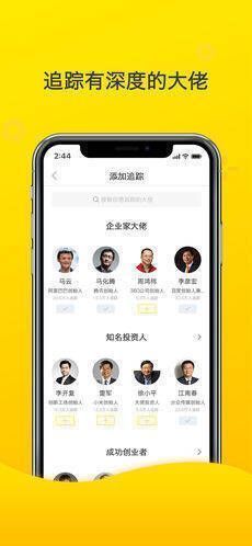 全面收录各领域企业家、投资人、创业者、媒体人、专业大牛等国内外大佬,超500位大佬供用户自由筛选,一键即可追踪。