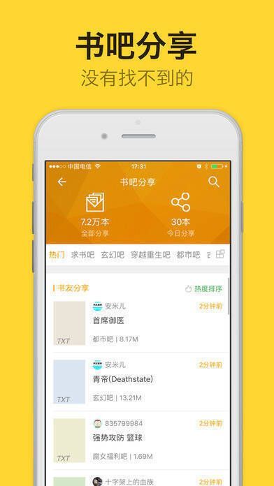 1. 专业书吧社区:玄幻、都市、言情等书吧,千万书友互动,评书、推书、求书,看书交友两不误。