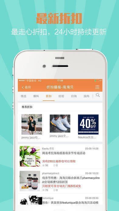 2、折扣播报:汇集欧美、日韩、澳洲、新西兰众多海淘商家的折扣信息。