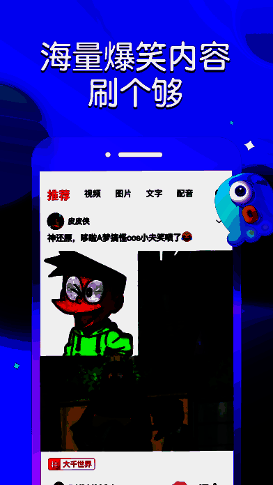 《皮皮虾pro》是一款搞笑社区应用APP,海量趣味爆笑内容等你来享,能为你带来别样的快乐体验。这里汇聚了原创、热门、无厘头、恶搞等各类搞笑内容,无论走路、吃饭、躺着还是蹲坑,随时打开都能让你发现生活乐趣无穷,让生活变得更加丰富多彩。赶紧下载,开启快乐之旅!