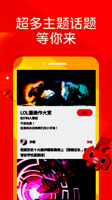 《皮皮虾pro》是一款拥有海量搞笑视频的神皮APP,于茫茫人海中与你相遇,只为告诉你:来这里,看新鲜热门搞笑事,品橘子树下神评论!无数充满创意、品位和奇思妙想的小伙伴都在此等你。吃饭、睡觉、蹲坑、等人时都能看,上课、上班也能瞅两眼,得意、失恋的时候更得看,哄女朋友也能给她看,让生活乐无边!皮皮虾支持手机号、QQ号和微信三种登录方式。首页设有推荐、视频和图文三个频道,右上角的搜索按钮可搜索美食、宠物、电影、热血动漫、恶搞等热门标签话题。视频播放时,每下滑到一个视频会自动播放,同时视频下方有多条热门评论单独展示,让你浏览各类辣手神评,还能找到志趣相投的远方皮友。喜欢就快来下载体验吧。