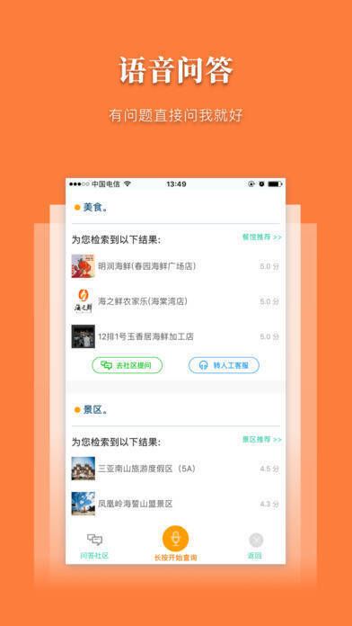 自动景区景点语音播报功能和智能问答模块需使用您的地理位置,持续开启后台 GPS 功能会显著降低电池续航。该 APP 由三亚信投公司开发,借助大数据平台,为游客在三亚旅游的吃、住、行、游、购等方面提供实用、优质、有趣且让人放心的旅游信息服务,提供吃喝玩乐全方位服务。