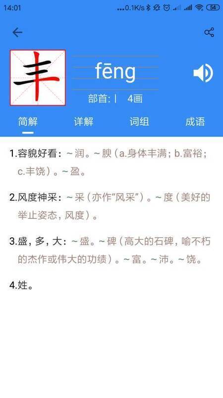 1、这是一款小巧实用的字典工具,专注于中华文化学习,使用时你会发现许多不认识的字。
