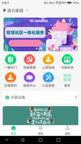 为住户提供访客预约、一键开门等快捷功能,以及社区公告、问题反馈、物业论坛等社区信息服务。