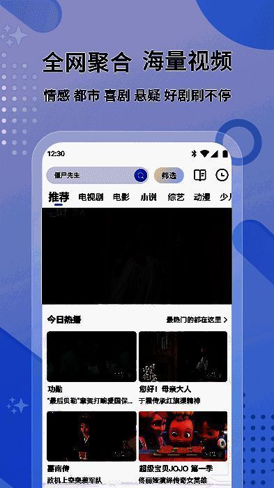 1、可搜索视频、综艺、电影、电视剧等多种视频资源。