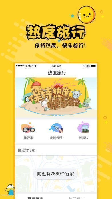 《热度旅行》是一款手机端旅游出行应用程序。它能够自动记录你的行程,让你随时知晓自己的位置,还能帮你发现周边的美食与好玩的地方,让每一次出行都充实又愉快。