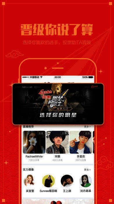 【明星养成】除观看艺人表演、与艺人聊天互动外,你还能和艺人一同完成明星任务,助力喜欢的艺人提升人气。最具人气的100名艺人将出演大型综艺节目《明星的诞生》。
