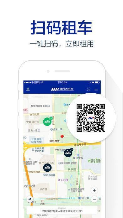 2、用户可利用 LBS 技术定位并预定距离最近的车辆网点,能即时预定,也可提前 15 分钟预定,全程用手机控制车辆,自助开启自由旅程。到达目的地后,把通利达共享车停在任意合法停车位,通过 App 完成费用支付即可。