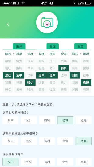 1、舌诊功能新增问卷调查步骤,助力匹配体质,使诊断结果更准确;